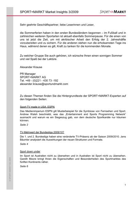 Ihr Ansprechpartner Sport Markt